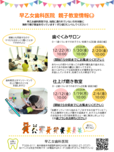お待たせしました、12月から来年2月までの親子教室のご案内です。